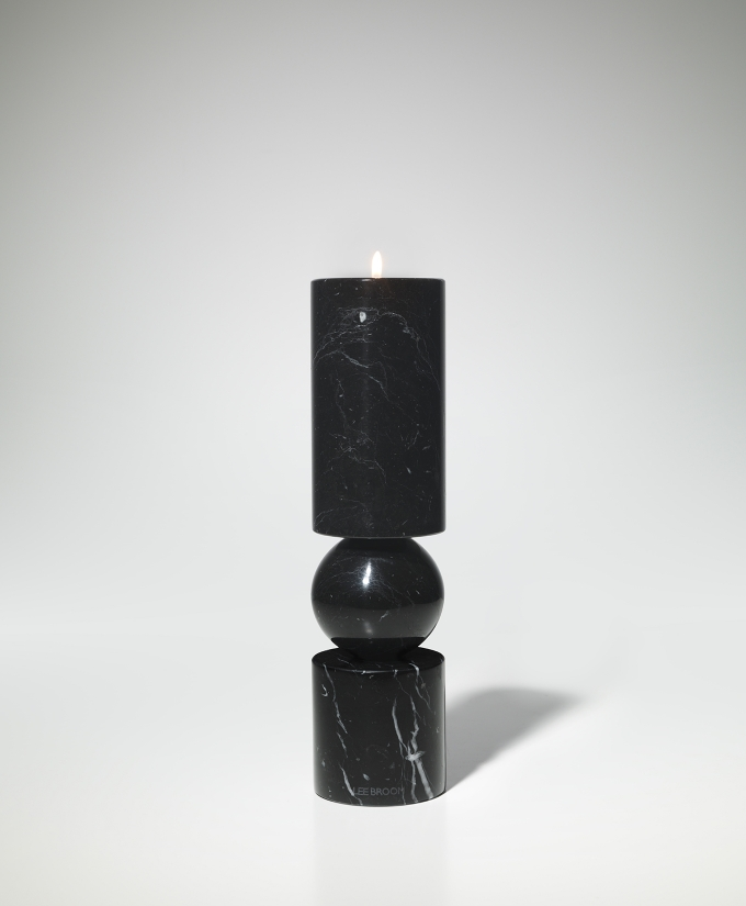 A new version of the Fulcrum candlestick has also been reimagined in a tactile, rough-hewn solid travertine. A play on the concept of pivots and supports, Fulcrum is a sculptural and monolithic candlestick whose cylindrical stem appears to balance on a central sphere.