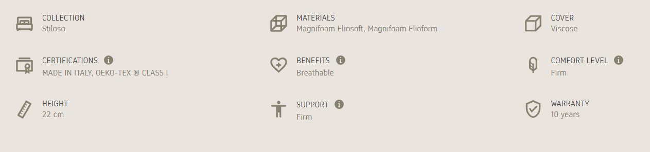 Stiloso 9 of the Stiloso line is the ideal mattress for those seeking a firm support without having to compromise the comfort. All at 22 cm of height.