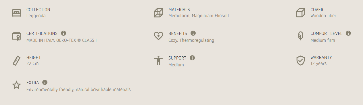 Natur Comfort New, thanks to the temperature-regulating properties of the Wooden Fiber, favors air circulation, eliminating bothersome sweating at night and keeping the body dry all night long.