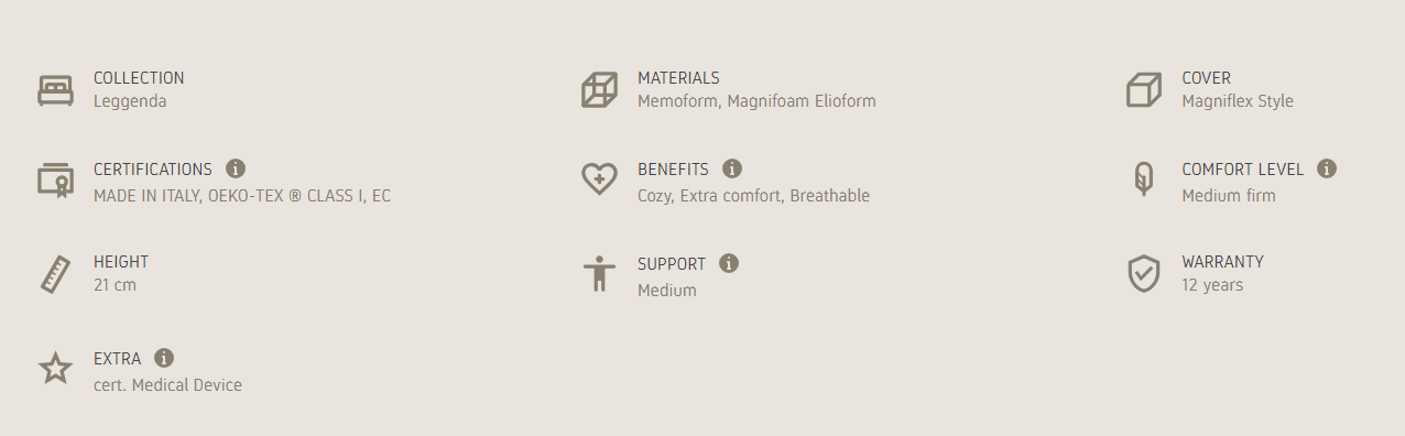 Magniflex's Memo Air 3D will wrap around you in a warm embrace due to its soft padding in Memoform. The layer in Memoform and the layer in Elioform contained inside the mattress provide optimal support to your back, helping to keep it in the correct position, so that you can enjoy a relaxing sleep all night long.