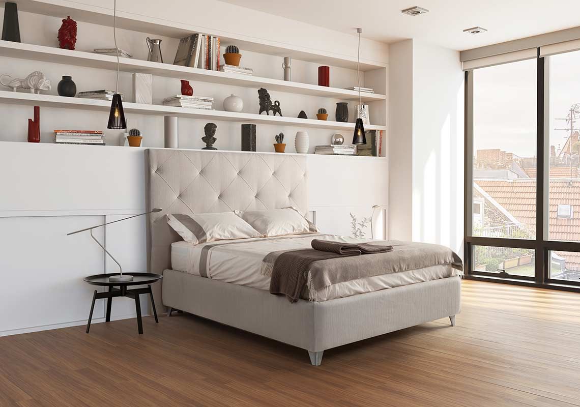 The Pisa bed is the exaltation of elegance thanks to the headboard with geometric design, a sign of great sobriety and sophistication.