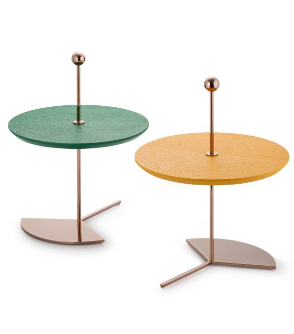 四款托盤的設(shè)計采用優(yōu)雅的圓弧形,明亮的金屬飾面使用香檳金、古銅金、玫瑰金等,表現(xiàn)了月亮明暗變化。而同系列的邊桌底部則是巧妙詮釋了太陽,月亮與地球處于不同位置時的月相變化。光明與黑暗的追逐,Off the moon系列讓想象力伴隨月球飛行。