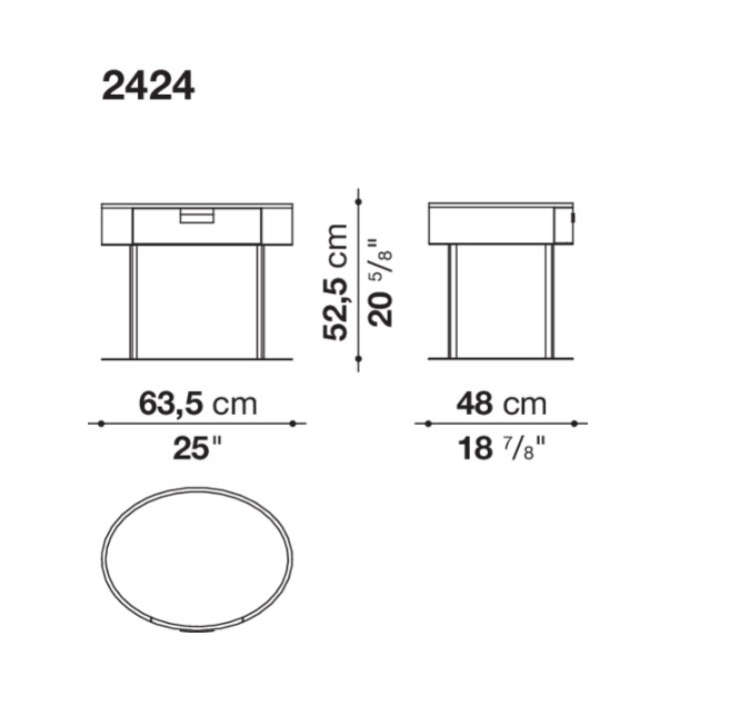 Perfect to be placed next to the bed, Amphora is presented in two versions: one has compact oval shape and holds two drawers of different sizes, the second one has a refined metal structure and hold one single drawer.