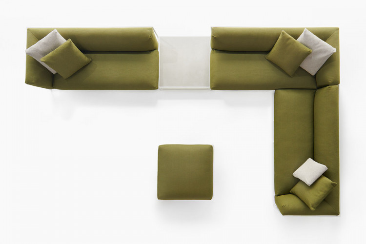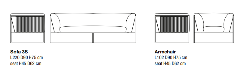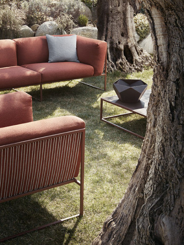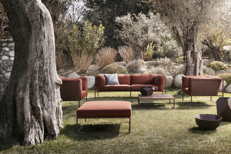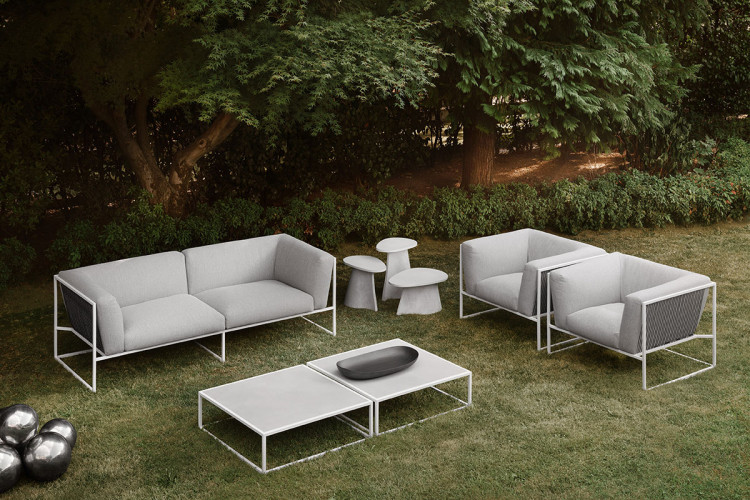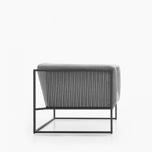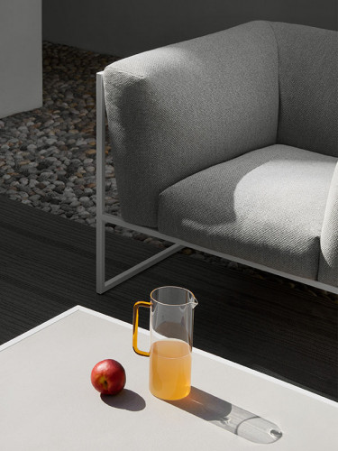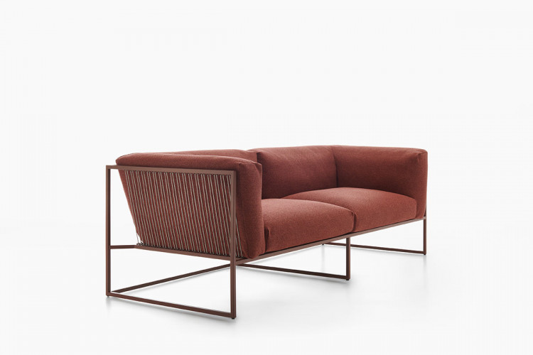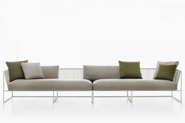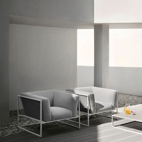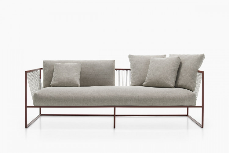 ARPA collection combines the stability of the orthogonal external shape with the softness and comfort of the inner cushion shell. The thin strings add elegance and fineness to every piece, giving a special sense of lightness, as if the whole cushion mass was hanging from the structure.