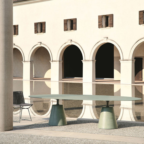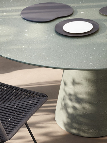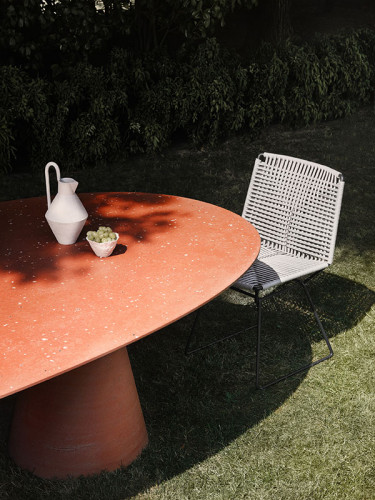 The iconic Rock Table, with its fluid and elegant silhouette, fits with great personality into a variety of outdoor settings, residential or public: gardens, terraces, dehors. In the new oval version, Rock Table becomes the perfect set for large outdoor gatherings, hosting up to 12 people.