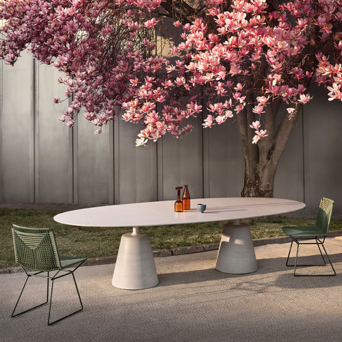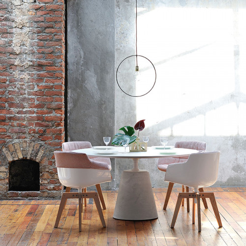 The iconic table, with its fluid and elegant silhouette, completely reveals the nature of what it represents: “a round table” that seems to float above a solid, inorganic base. A mixture of natural and industrial materials that are blended to create a new product with a smooth design, following the same philosophy of Flow collection. Rock Table unique style, based on simplified shapes, is combined with innovative production systems and this makes MDF Italia tables suitable not only to modern living rooms, but also to lounge designs and working contexts, such as offices, meeting rooms, conference rooms with a strong identity.
