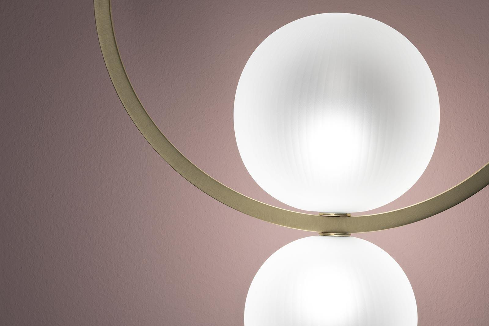 Suspension lamp. Hand blown titanium metallized glass dome with internal frosted bubble glass sculpture.