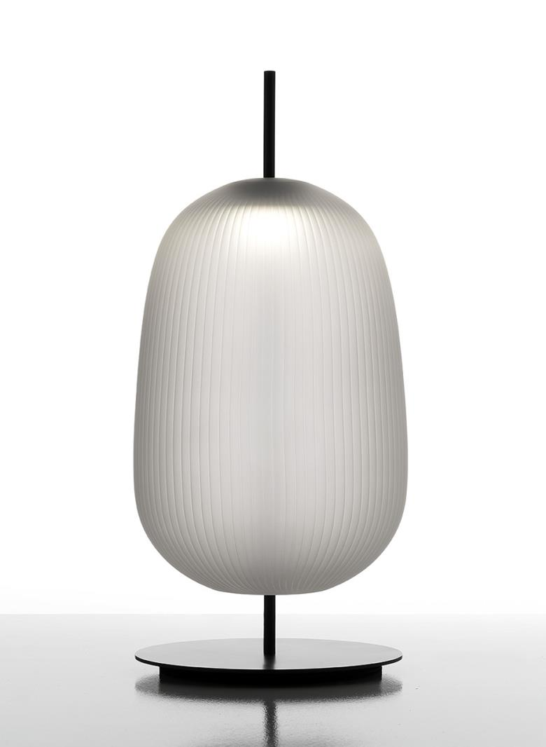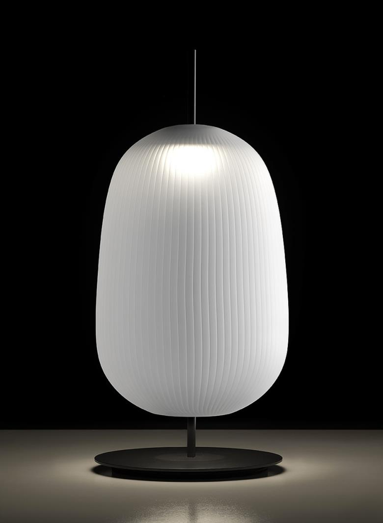 Suspension lamp. Hand blown titanium metallized glass dome with internal frosted bubble glass sculpture.