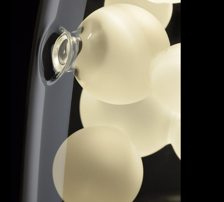 Suspension lamp. Hand blown titanium metallized glass dome with internal frosted bubble glass sculpture.