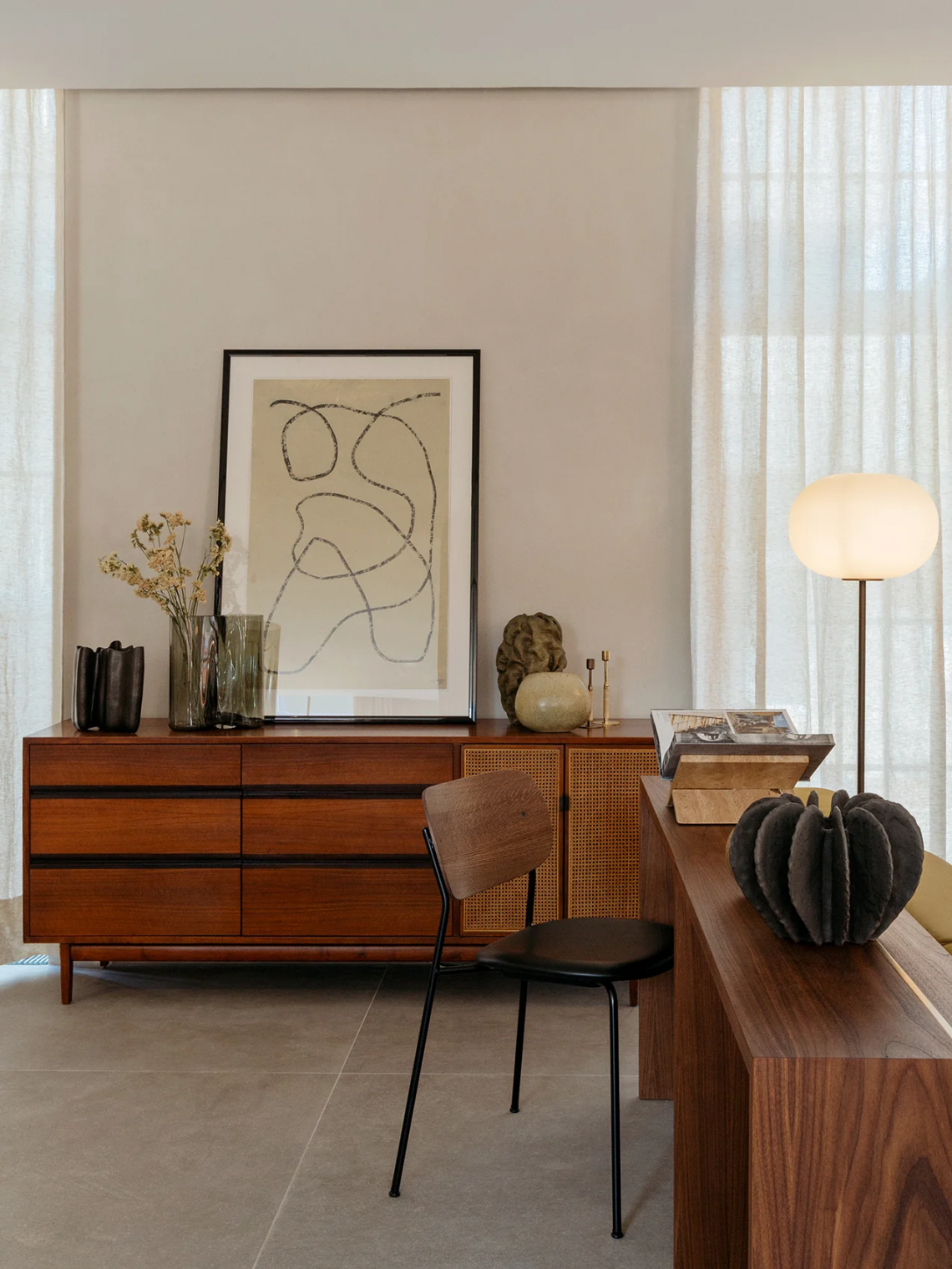 The JWDA Floor Lamp is part of a collection of lighting inspired by traditional oil lamps. Crafted from contrasting materials, the elegant yet bold design is a lesson in refinement and a study in geometry. An elliptical opal glass shade, a slender metal stem, and a rectangular marble base fitted with a dimmer switch come together to create this timeless addition to modern spaces.
