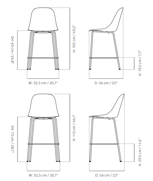 The Harbour Side Chair is also available with sleek bar- and counter-height base options that let you pull your favorite chair up to your favorite surface, whatever its height. Whether you love to eat, work and hang out at the countertop bar, or prefer the elevation of the high top, the new bar and counter versions invite you to pull right up.