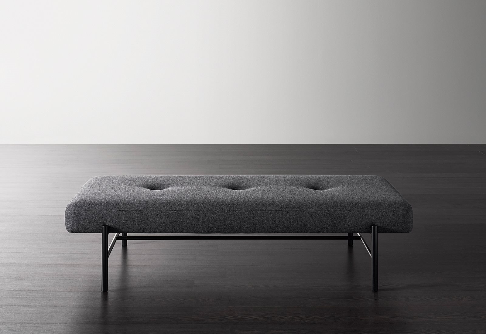 Padded day bed and bench with fixed cover