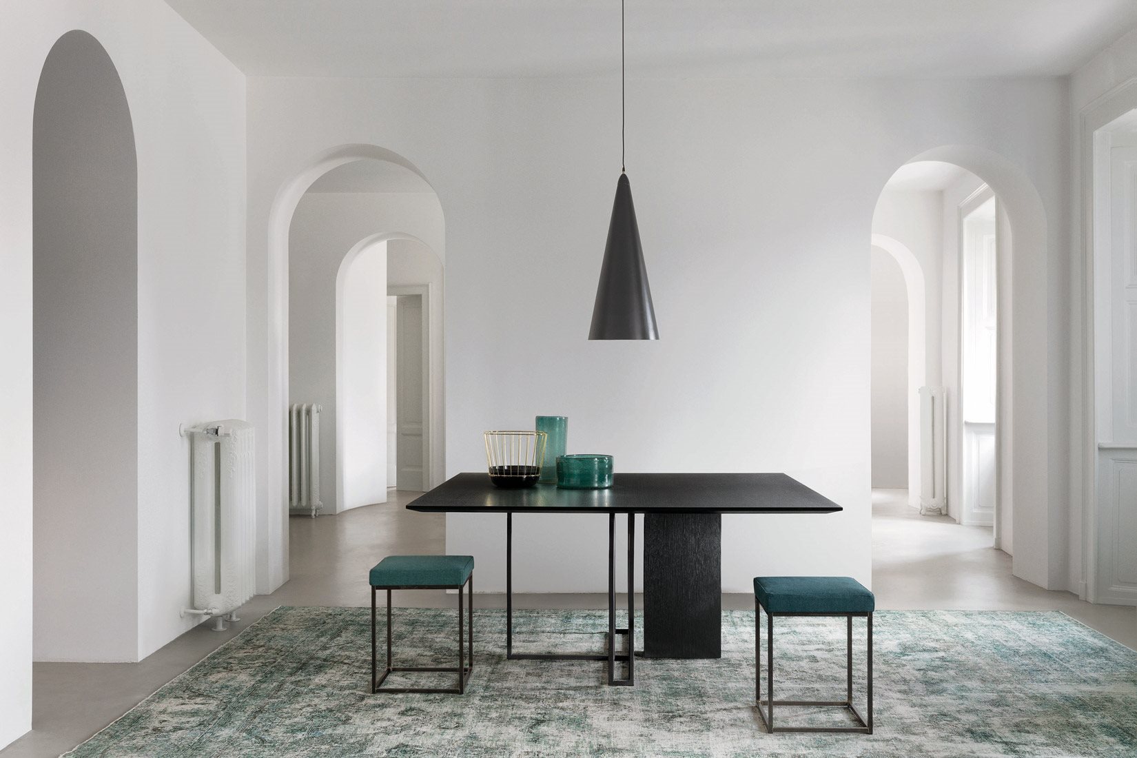 金屬底座的餐桌。 有不同型號和尺寸的臺面