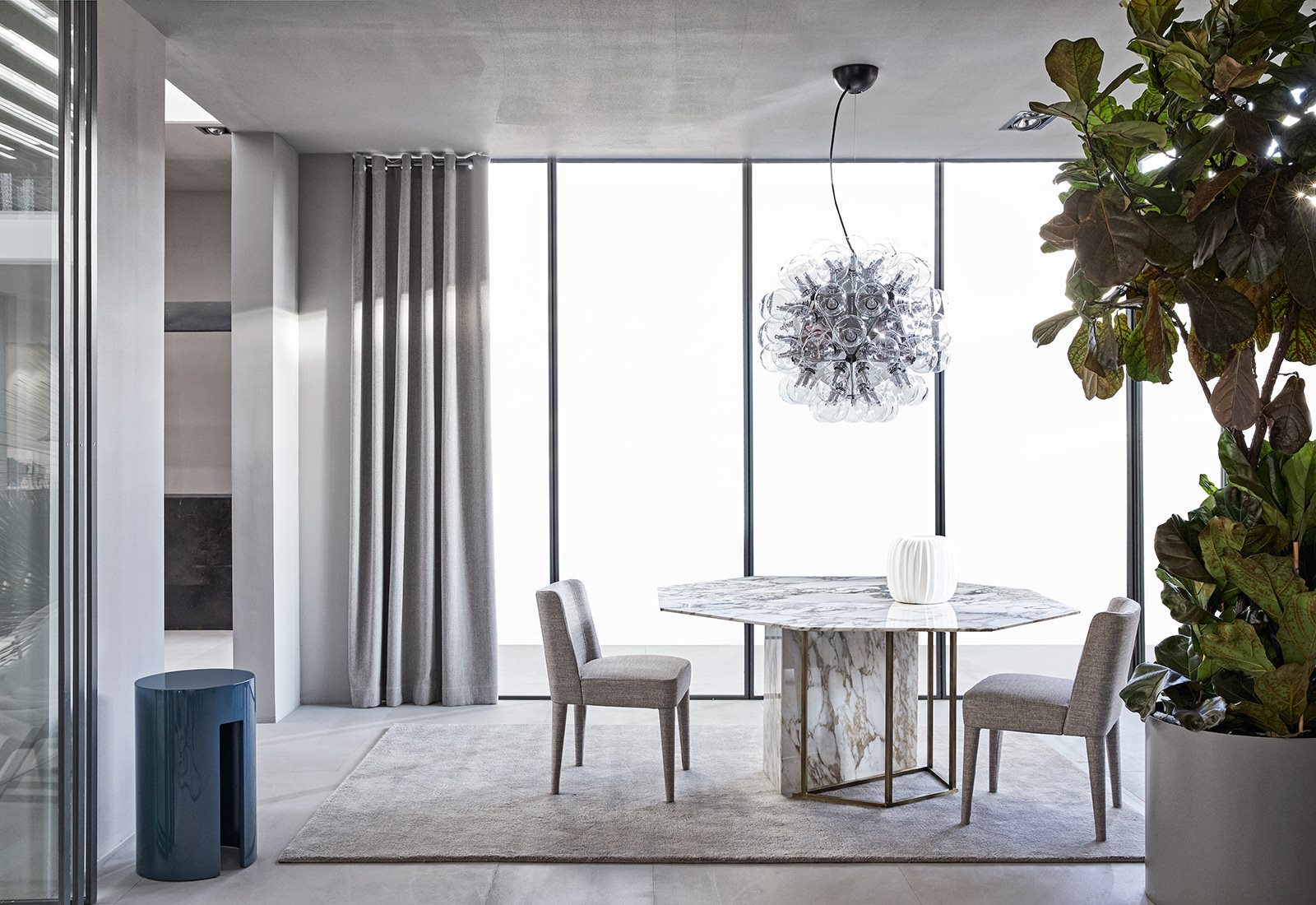 金屬底座的餐桌。 有不同型號(hào)和尺寸的臺(tái)面