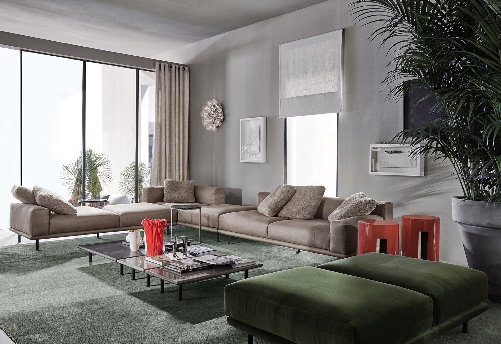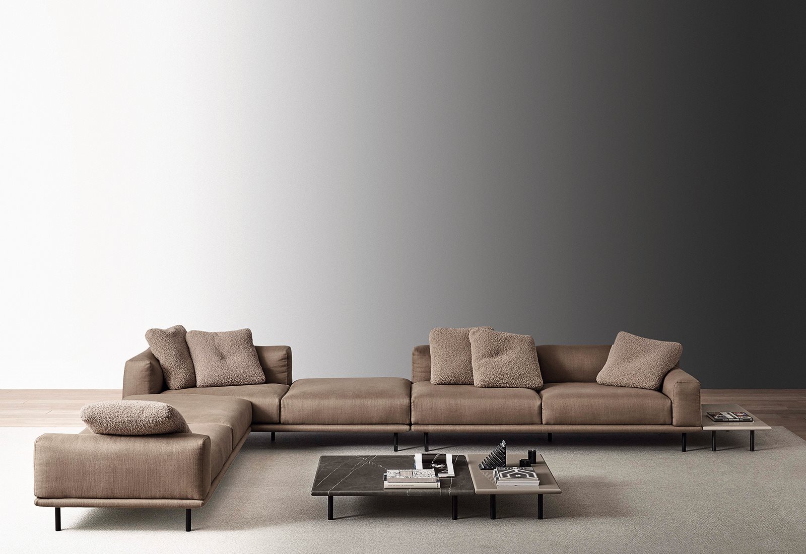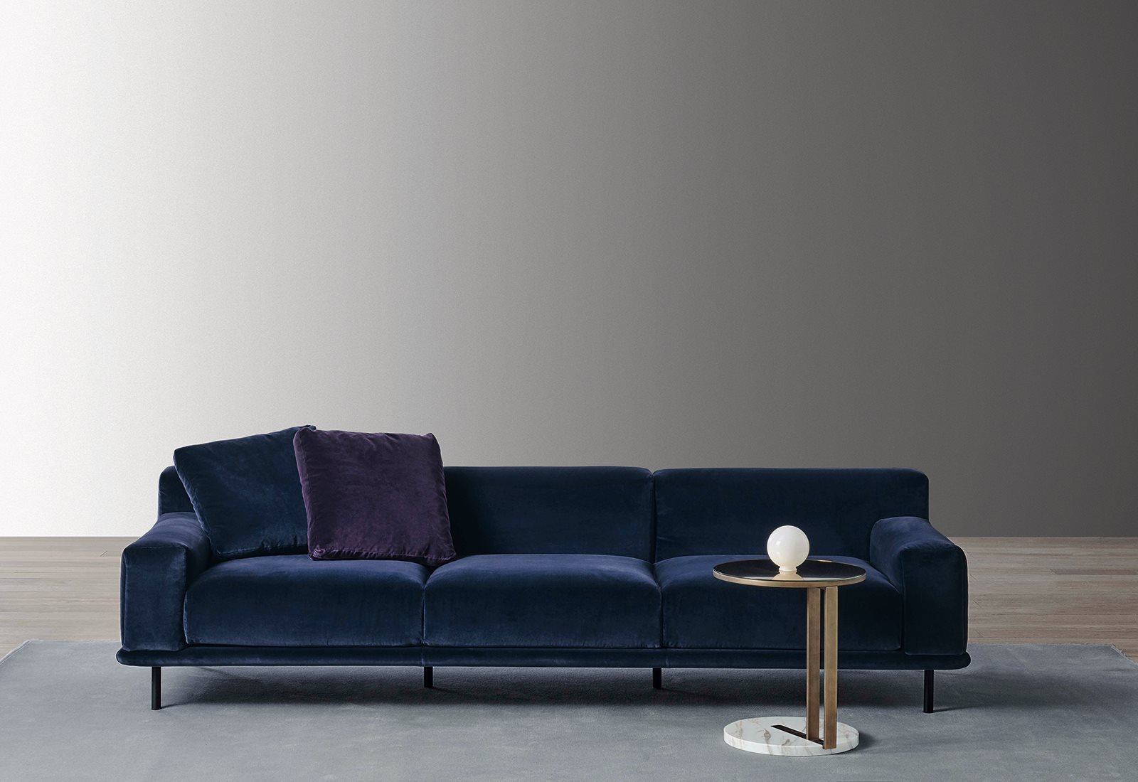 沙發以優雅的比例,柔軟的墊子和幾何線條為特色