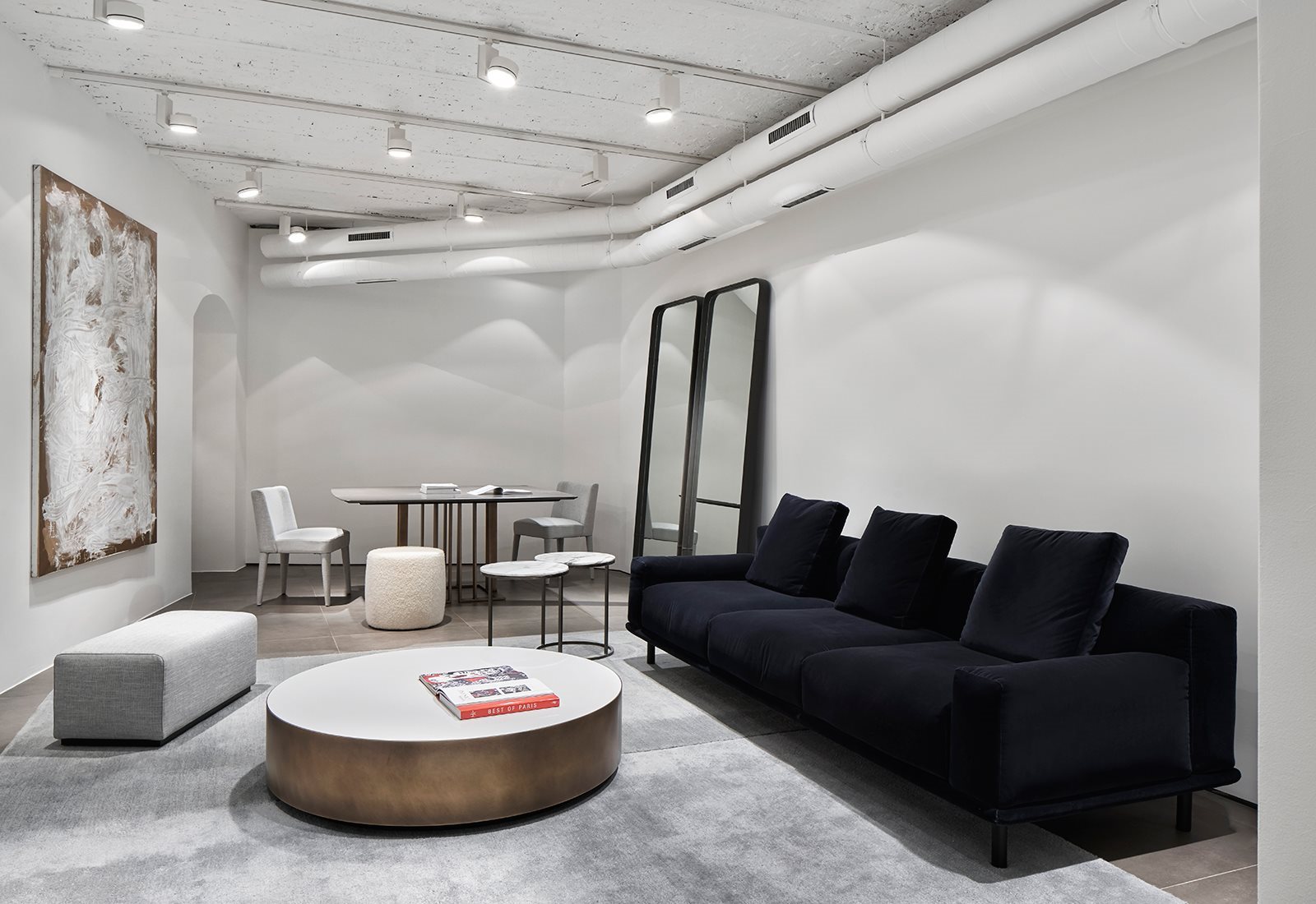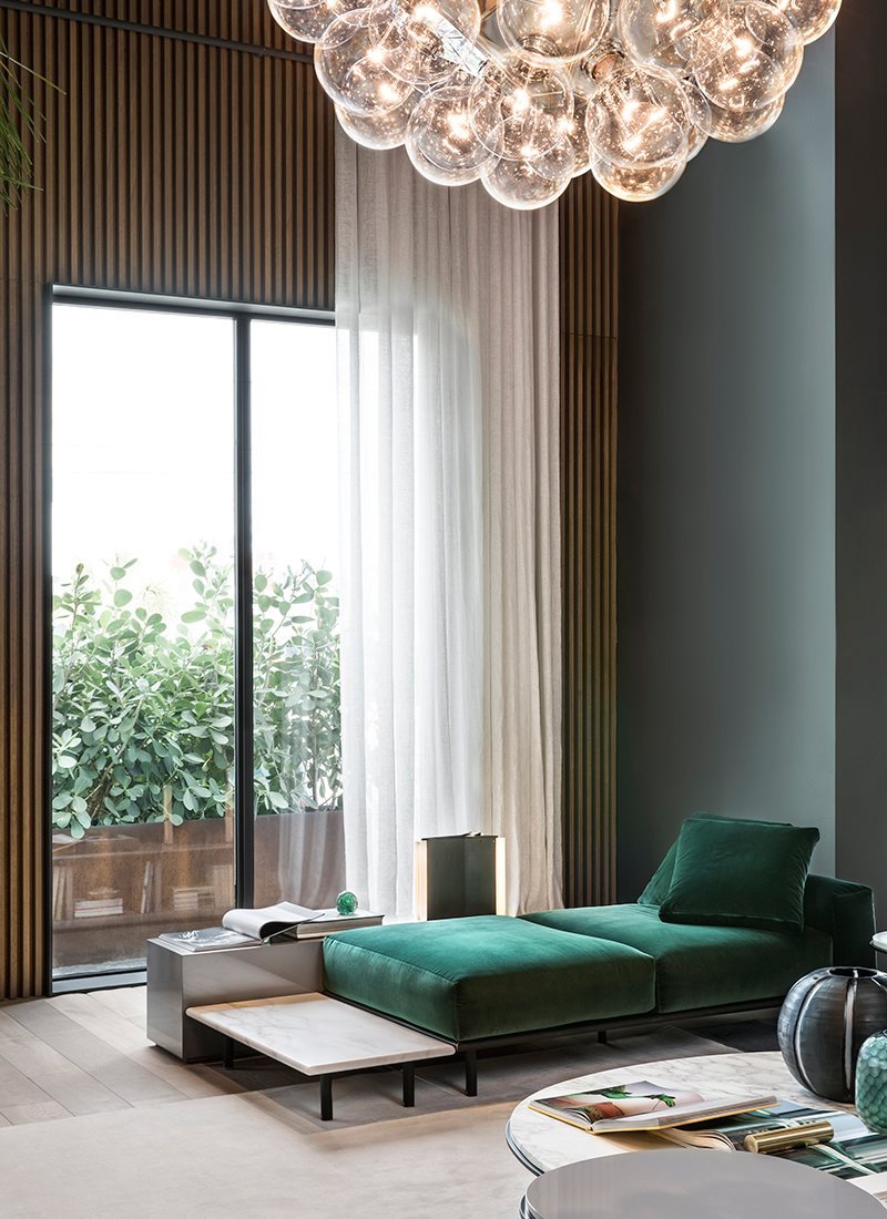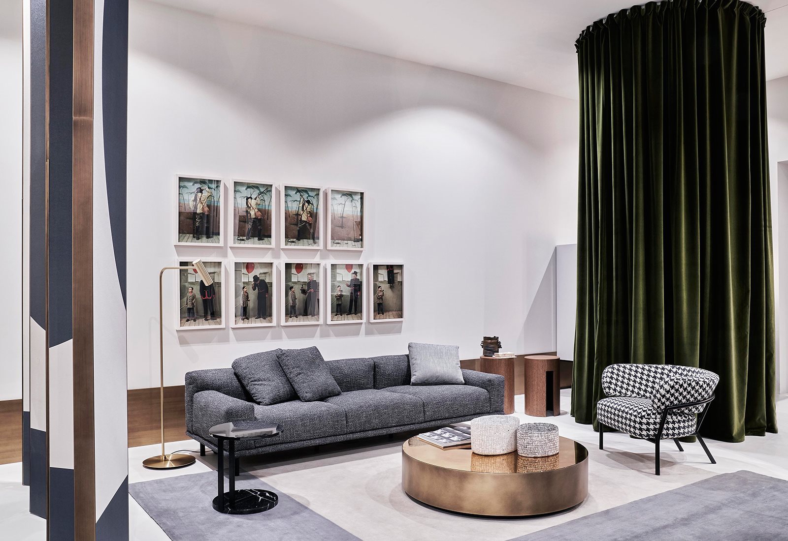 沙發以優雅的比例,柔軟的墊子和幾何線條為特色