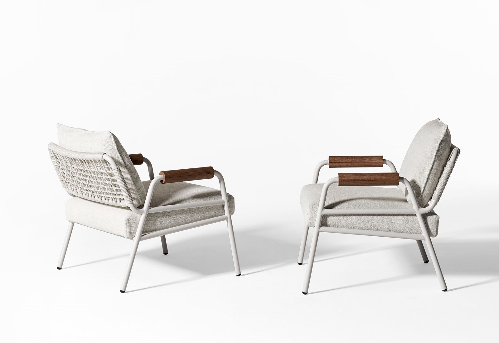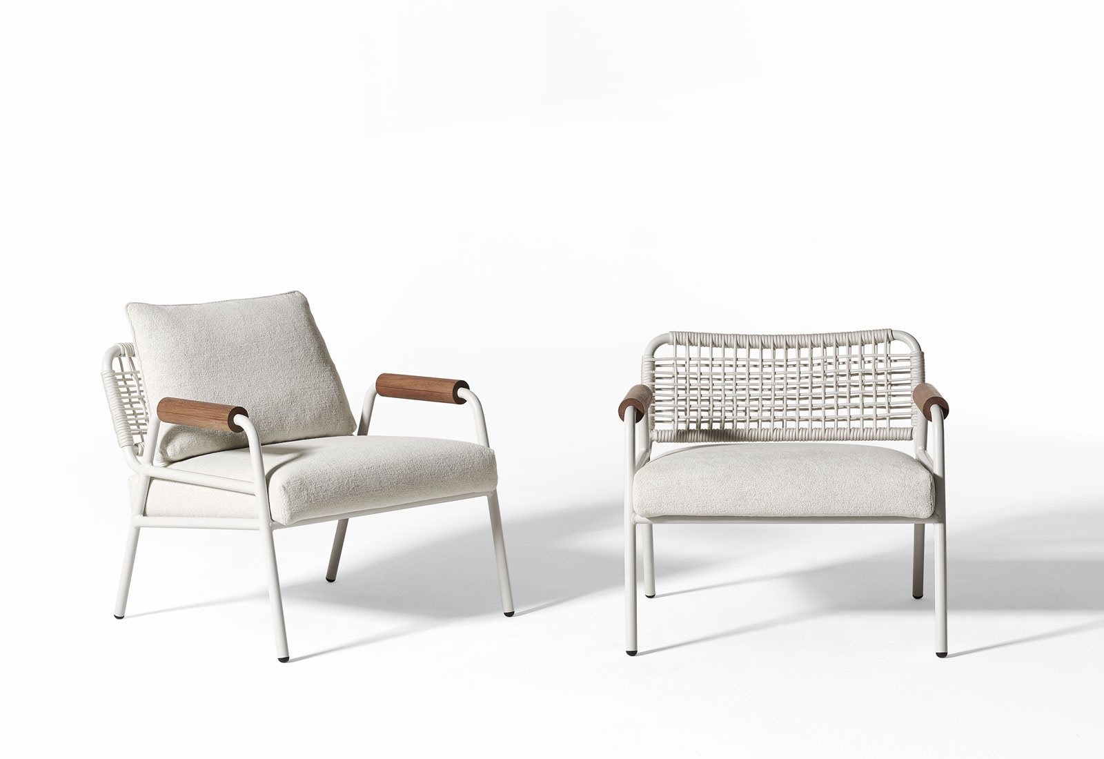 堅(jiān)固的伊羅科木材,鋁材以及編織繩是Zoe Wood Open Air的靈魂:一系列的扶手椅以及戶外長(zhǎng)凳,將室內(nèi)的舒適氛圍傳達(dá)到了室外. 座椅扶手使用的伊羅科木材以及椅背編織方式的可選擇性,讓其看來(lái)更具通用性. 在鋁制框架上的聚丙烯繩的編織完全由手工完成,并且有兩個(gè)版本可用選擇, 其顏色分別有四種可供選擇: Chalk, Petrol, Elephant 和 Black.
