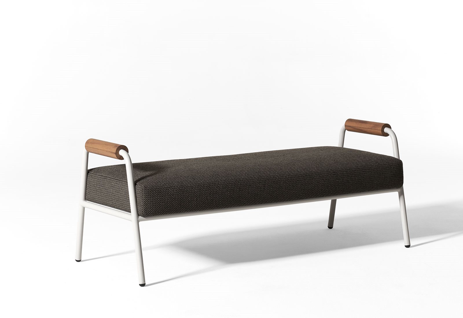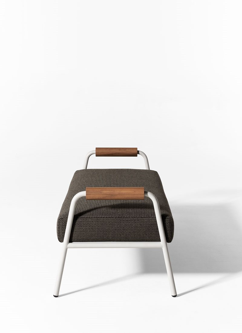 堅實的伊羅科木,鋁材和覆蓋的織物是Zoe Wood Open Air長凳的靈魂:一個剛好路過的座位,可為室外環(huán)境營造出室內典型的溫馨氛圍。長凳扶手上的伊羅科木的裝飾細節(jié),以及有- Chalk, Petrol, Elephant ,Black四色可選的鋁制框架,使這個系列更加通用。