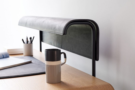 lampshade. The desk is part of the Apelle collection.