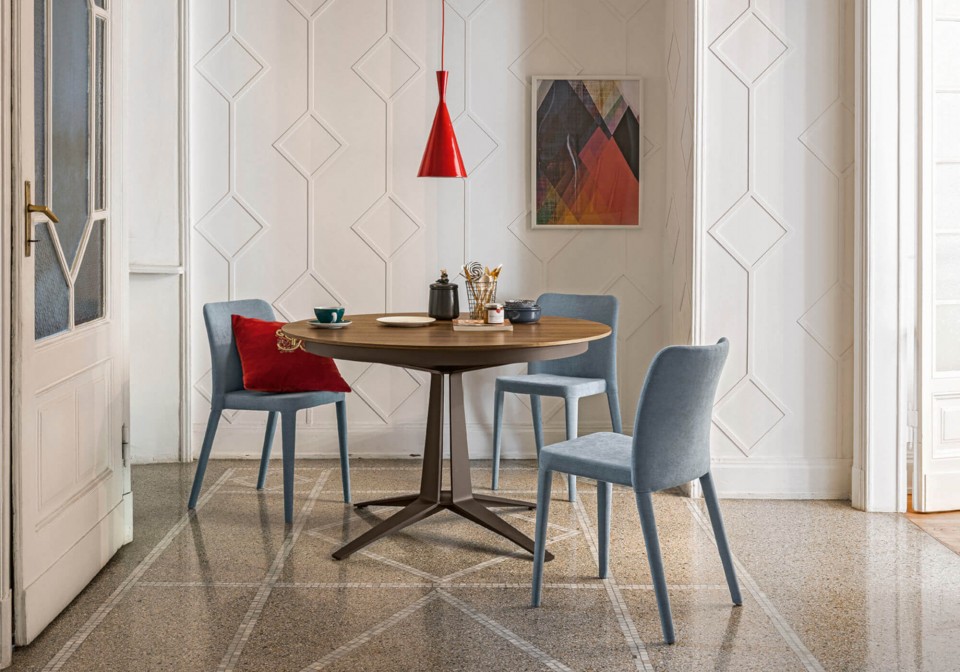 Nenè chair with four leg wooden frame is stackable up to eight pieces.