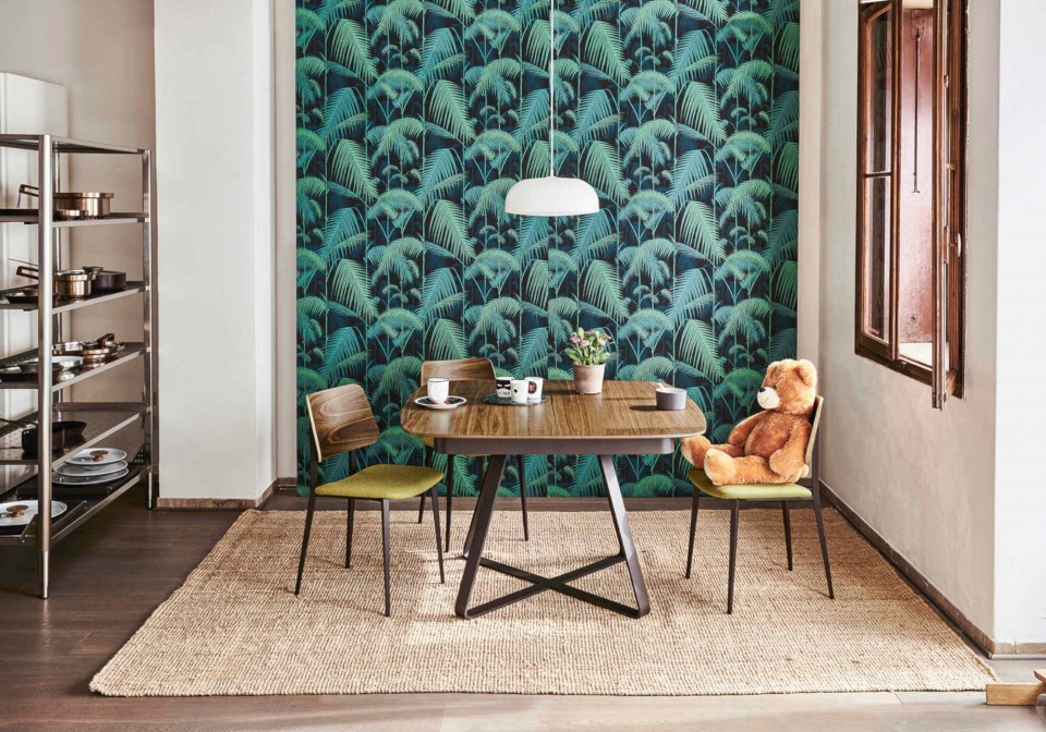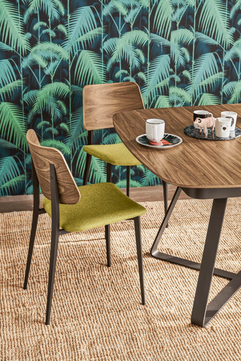 Chair with wooden four leg frame, available in different finishes. Seat and backrest upholstered with hide or regenerated hide.