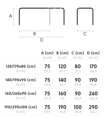 Diamante extendable table availabre in different sizes.