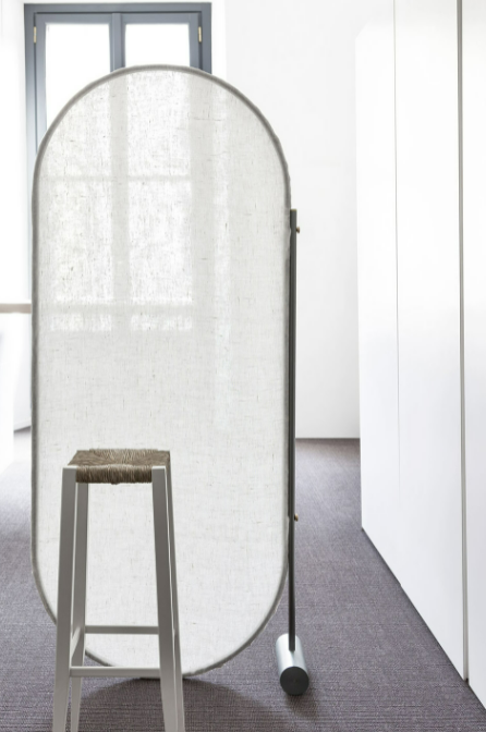 permeabile e crea divisioni leggere dello spazio; con la cornice nuda, arricchita di traversi orizzontali diventa un portaoggetti polifunzionale.