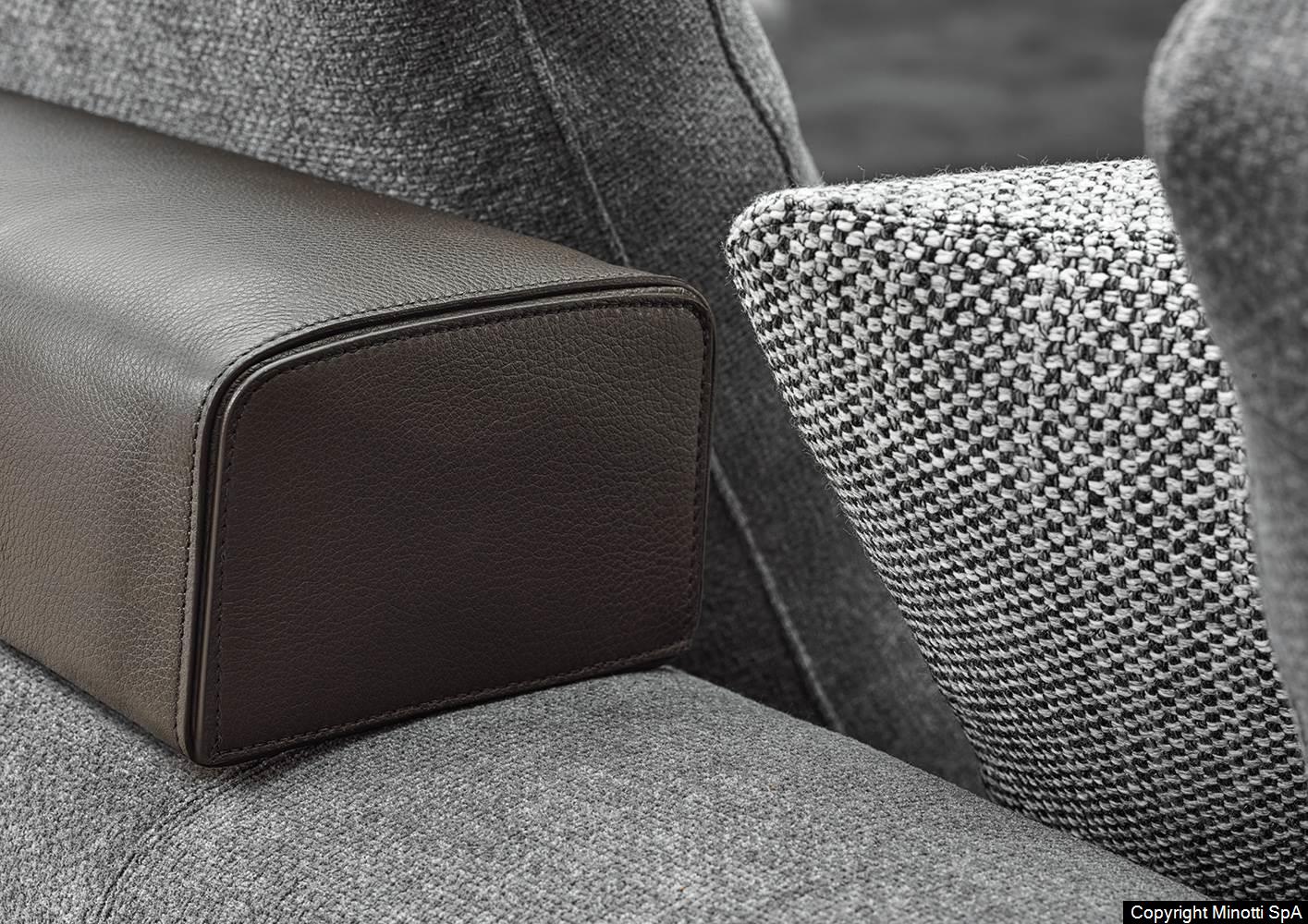 As well as the fabric covering, the padded structural base can also feature a covering with strips of leather, crafted with the same technique used in fine leather luggage-making. References to the concept of high-end leather goods are also found in the headrests and the elegant “C”-shaped Flap surfaces, which seamlessly blend into the seating elements, animating the compositions with a vibrant rhythm.