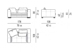 The system includes seats with a depth of 108 cm and chaise-longue elements with a depth of 143 cm - with high and low backrests and armrests.