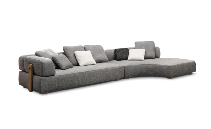 Florida is a formal clustering of soft, geometric shapes outlined in outdoor-friendly eco-leather piping, and comes in four colors – Light Grey, Dark Grey, Brown and Sand. The variety of pieces available allows for the creation of multiple compositions that meet the increasingly widespread demand for spaces that are more intimate and cozy, as well as areas for social gatherings, even in outdoor settings. The easy-to-remove upholstery comes in an impressive array of outdoor fabrics in shades inspired by the colors of nature, as well as in more vivid hues. Equipped with a state-of-the-art adjustment system, the feet are made of prized solid natural Iroko wood, as are the rear supports that stabilize the padded backrest. The backrest cushions are attached to the wood supports by elegant metal frogs with polished Pewter finish that allow the cushions to be quickly detached in order to remove the upholstery covers. Florida’s structure is in metal, suitably treated to make it especially resistant to corrosion, and coated in foam padding; it is then covered in water-resistant, weather-resistant fiber and fabric.