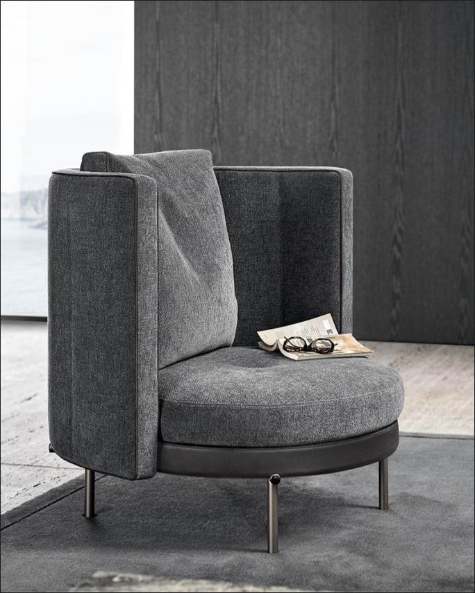 The Torii family includes sofas - with high or low backrest and a linear shape, rounded at the arms - inclined sofas with a combination of two different depths, armchairs and lounge and dining little armchairs, ottomans, coffee tables, and a slender, oval-shaped console table, ideal for placing anywhere in the living area.