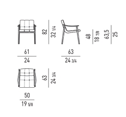 The family comprises armchairs, lounge and dining little armchairs, benches, poufs and coffee tables.