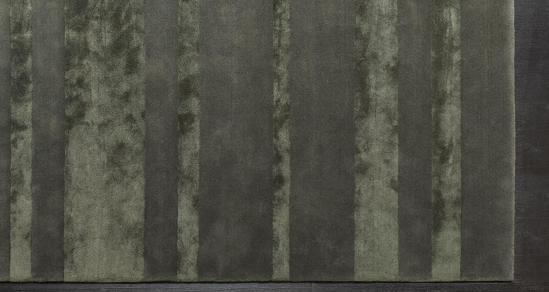 The kinetic art movement was the inspiration for the pattern featuring stripes of various widths on the Dibbets Barcode rug.