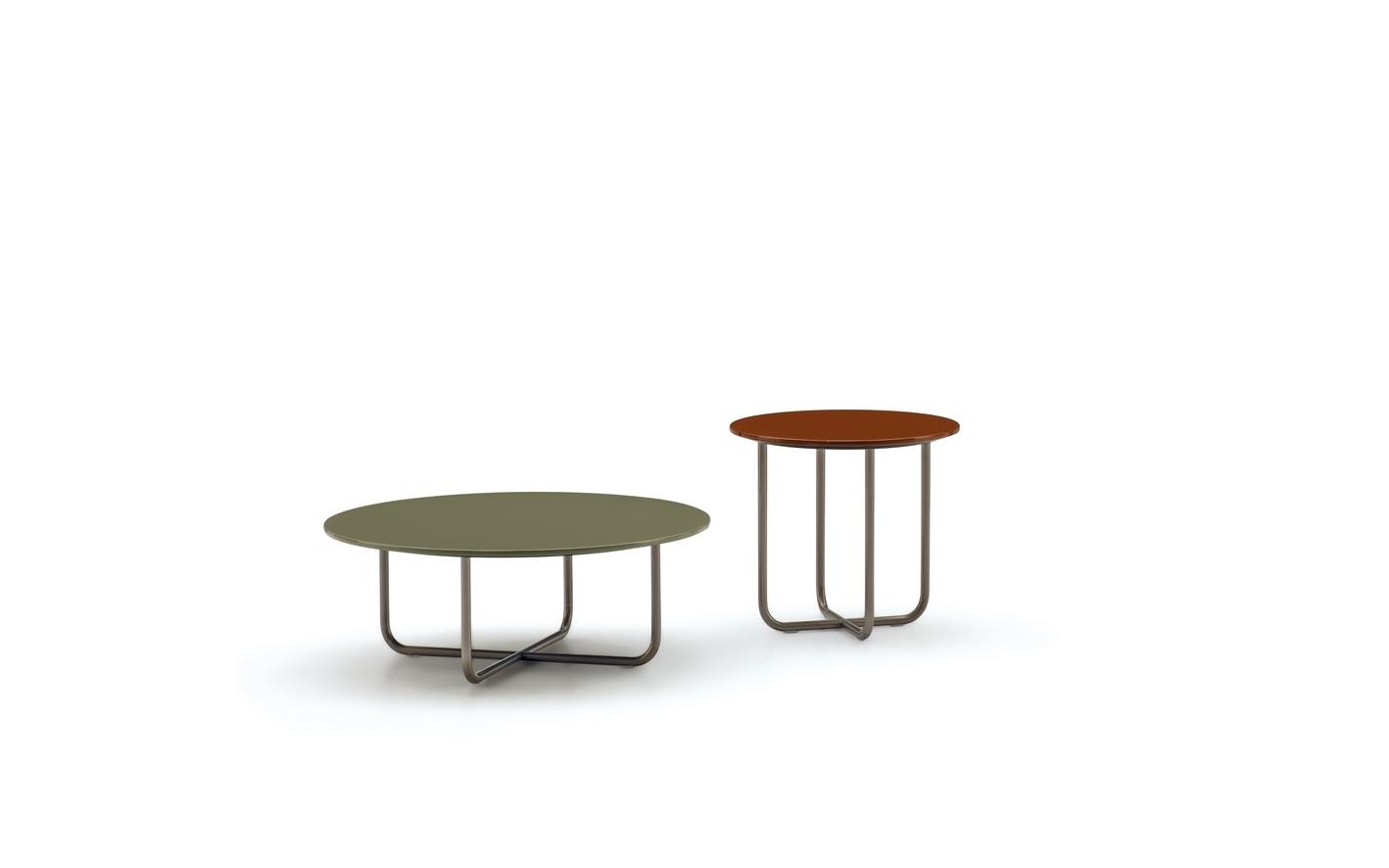 Its distinctive feature is the colour of the top in stratified HPL laminate, available in glossy lacquered White, Rust and Khaki Green finishes, blending in seamlessly with the palette of the outdoor textile collection.