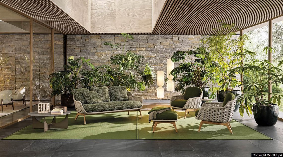 The enveloping and comfortable body of the Belt seats designed for indoor use in 2021 also shapes the outdoor version.
