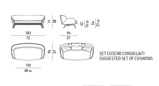 The distinctive characteristic and inspiration behind the Belt family, designed in the all-fabric or leather versions, is the idea of a belt that draws the profile of the body, encircling it, then breaking off and fastening on the front of the seat.