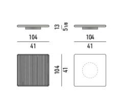 The coffee and side tables also reflect the same style, with floor support in polished Bronze varnished metal and tops in Dark Brown stained Canaletto walnut or Liquorice coloured ash. The different sizes and heights of the coffee and side tables allow for a play of superimpositions that invigorates the horizontality of the entire family.