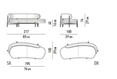 The architecture of this object, raised off the ground, rises above the seat to support and frame the backrest, lending an aerial elegance to this sofa proposed by Minotti for both residential and hospitality projects.