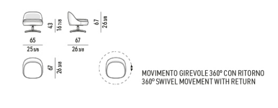 The possibility of having the armchair, the dining little armchair and the lounge armchair also in the 360° swivel version with return (base in polished Bronze-coloured varnished metal, with sheathed spokes in solid ash with an open-pore Liquorice-coloured lacquer, or in solid Canaletto walnut with Light Brown stain) makes the Sendai seats particularly comfortable for both residential and hospitality environments.