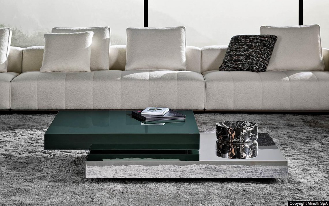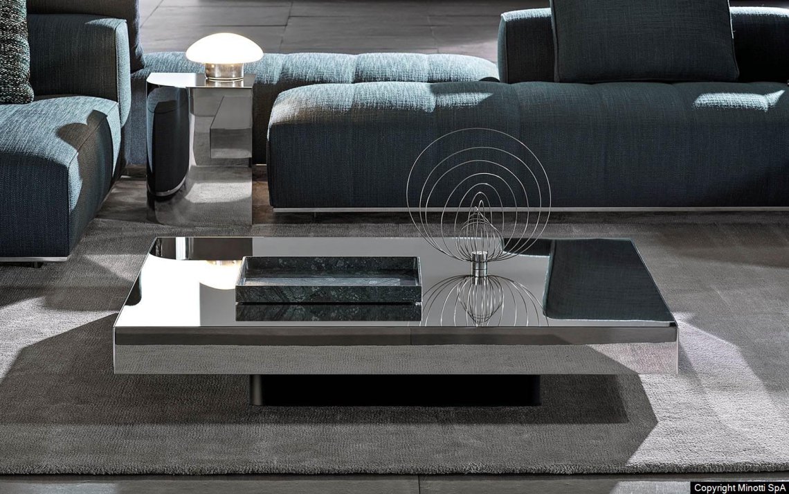 The Solid Steel family of coffee tables is characterised by its clear 1970s inspiration: glossy and mirrored finishes, rigorous, overlapping and staggered volumes recreate a strong yet minimal architectural geometry, which perfectly complements different styles of living areas.