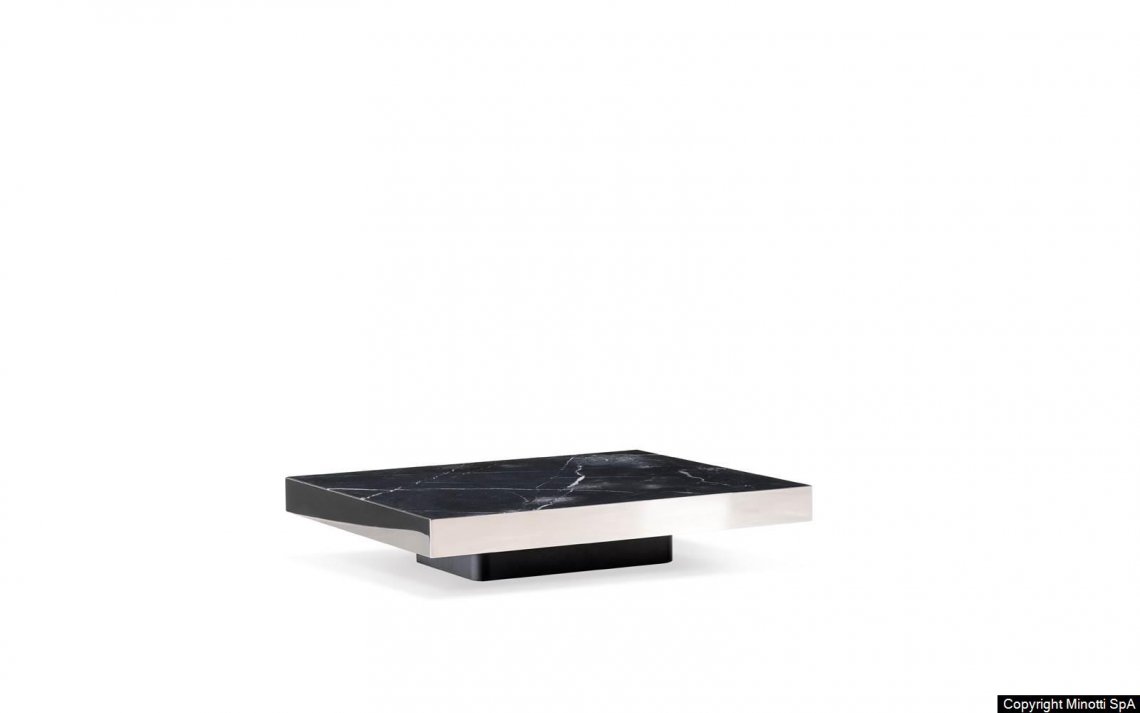 The colour palette is consistent with the imagery of the living space by which they were inspired: mirrored stainless steel combined with coloured lacquers, wood and marble finished with a special smoothing treatment that enhances its matt texture, in stark contrast to the shine of the mirrored steel frame. These details are typical of the style of a brand that knows how to translate simplicity into sophistication, transforming a furnishing accessory into a strong and recognisable feature. The minimalism of their shape makes these coffee tables architectural objects with a big personality, incisive in the overall aesthetics of the space and yet easy to insert into many contexts: in the area in front of the sofa, but also at the side of the living room, as a support element, the ideal finishing touch to any environment.