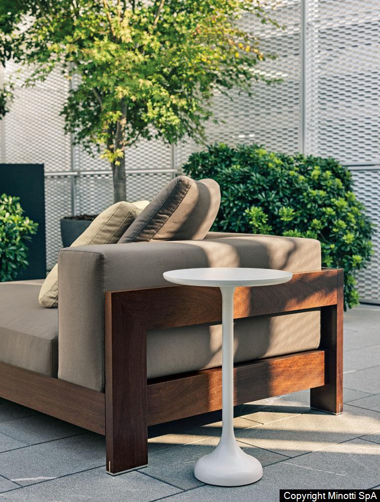 Warren is a furnishing accessory that can provide a useful support surface for all the seats in the collection. Made as a single piece in cast aluminium, in the outdoor version it is available in the Ecru or Dark Brown varnished variants, which join the White orange peel finish, rendering it more versatile, and suitable for use in a wide variety of settings.