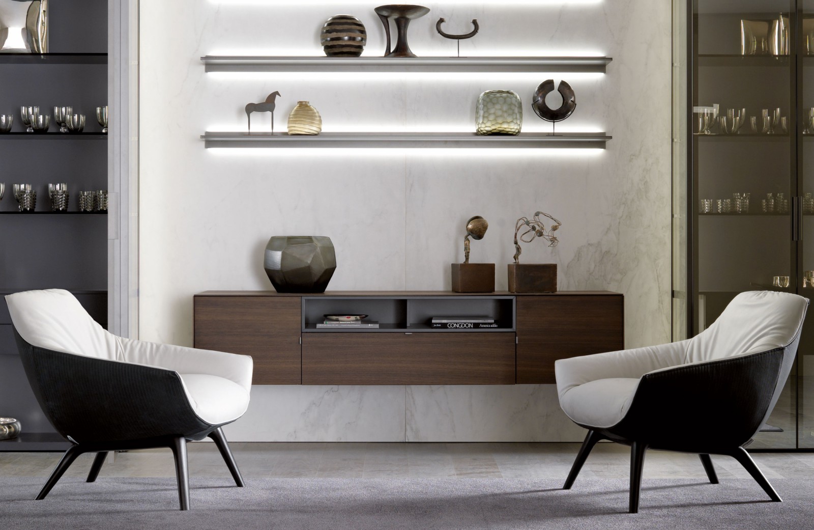 The base of the Florentia armchair enlivens the juxtaposition of the rigorously designed legs with