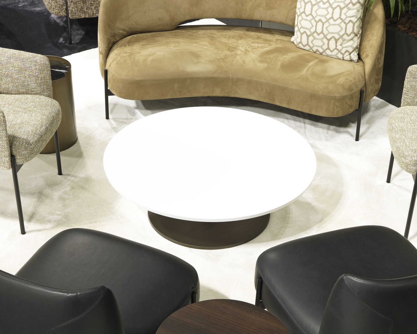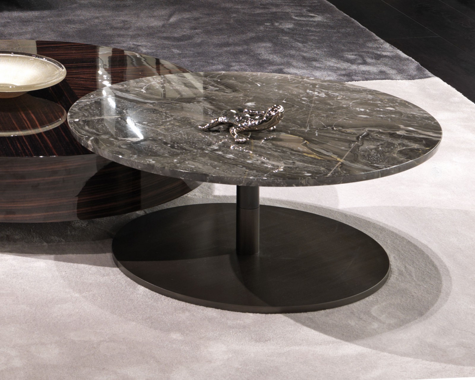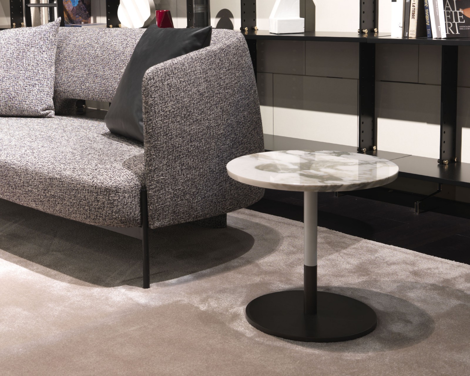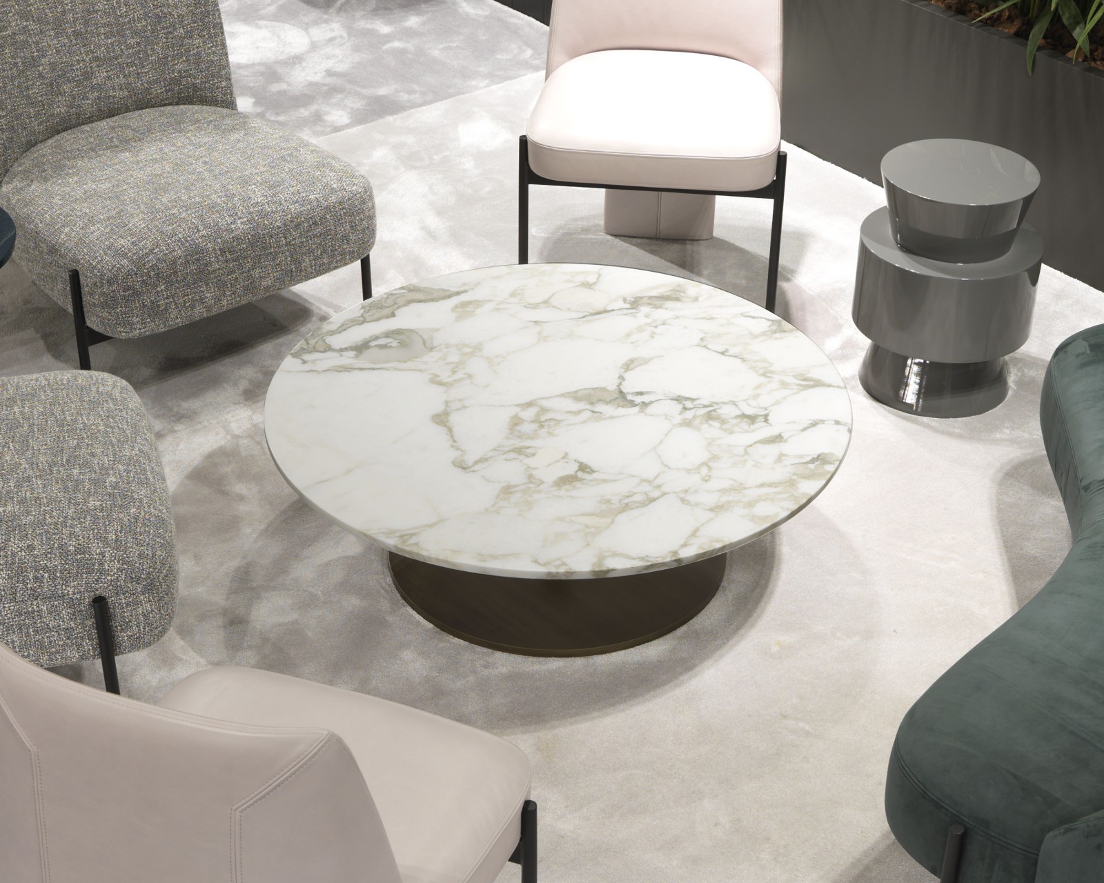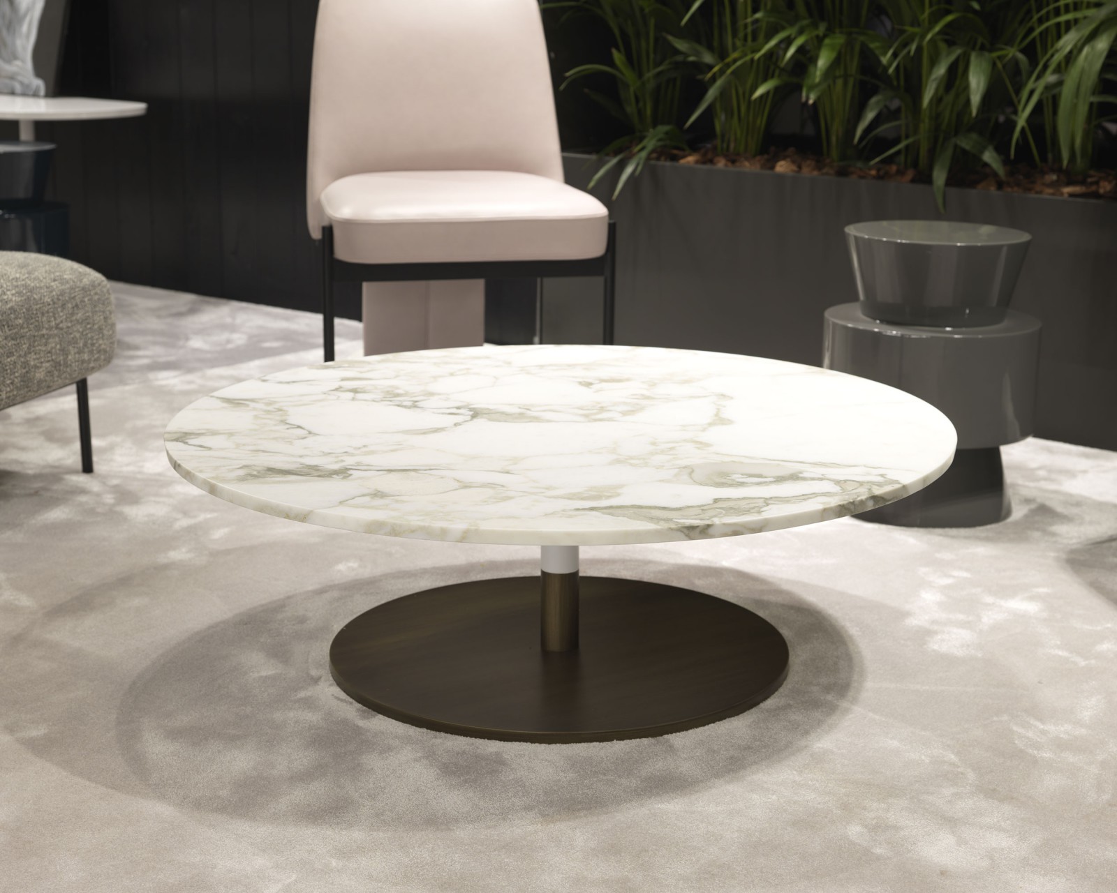 材質(zhì)之間強(qiáng)烈的對(duì)比是Stiletto系列的鮮明特征。大理石,金屬和木材交替出現(xiàn),具有生動(dòng)的幾何效果,