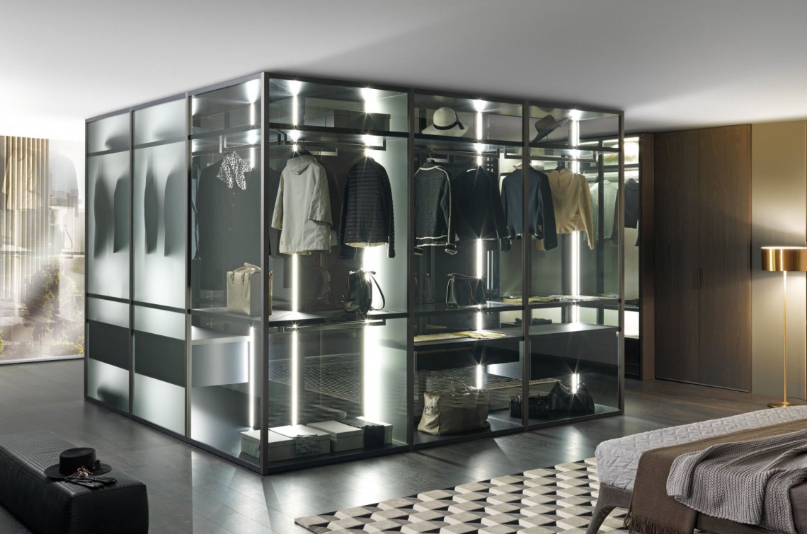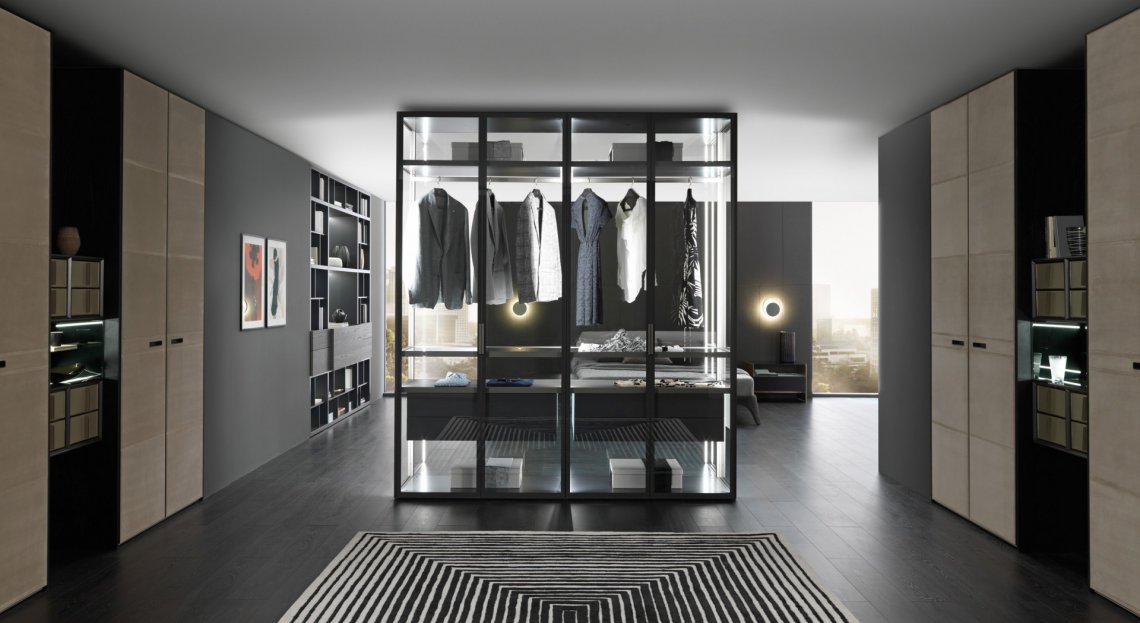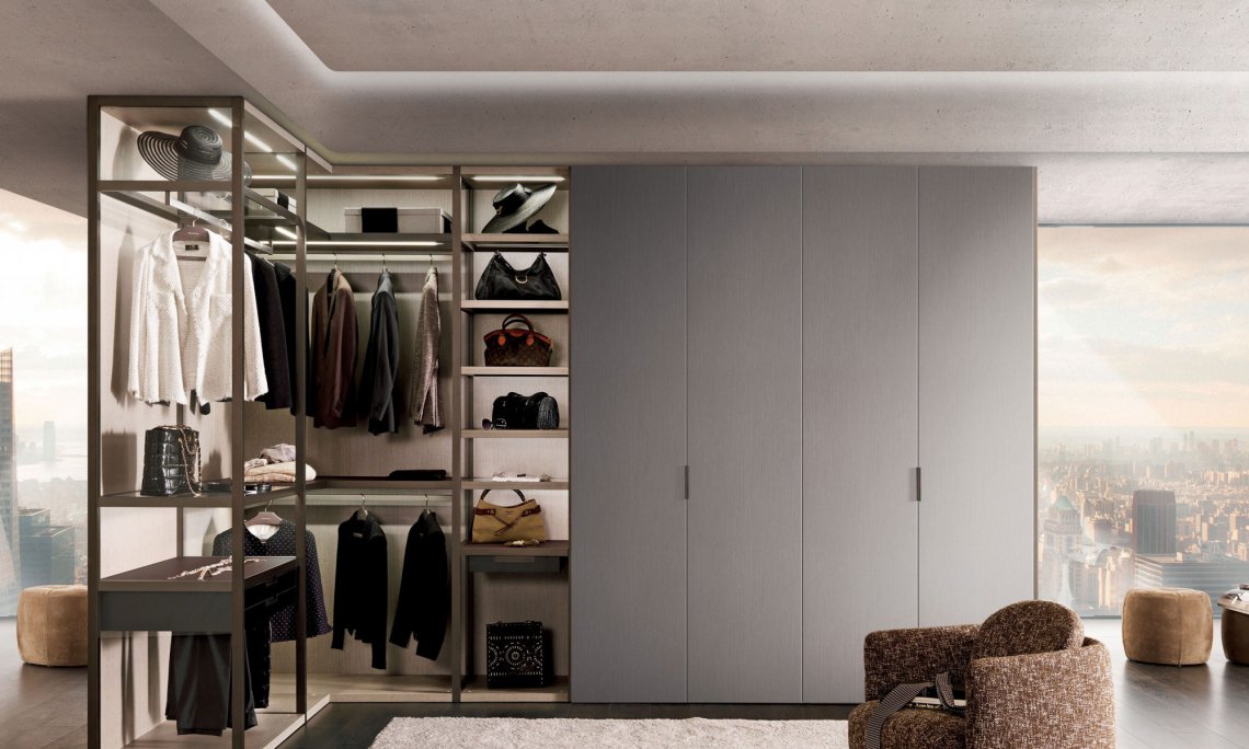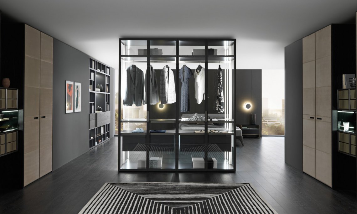 The evolution of Palo Alto I-Box, Palo Alto Free is the new wardrobe concept that calls for the use of doors directly supported by floor-to-ceiling posts that form the structure. This simple system for closing niches or separating spaces sustains a series of accessories for the compartments, similar to those of the Palo Alto I-box.