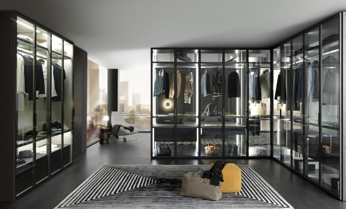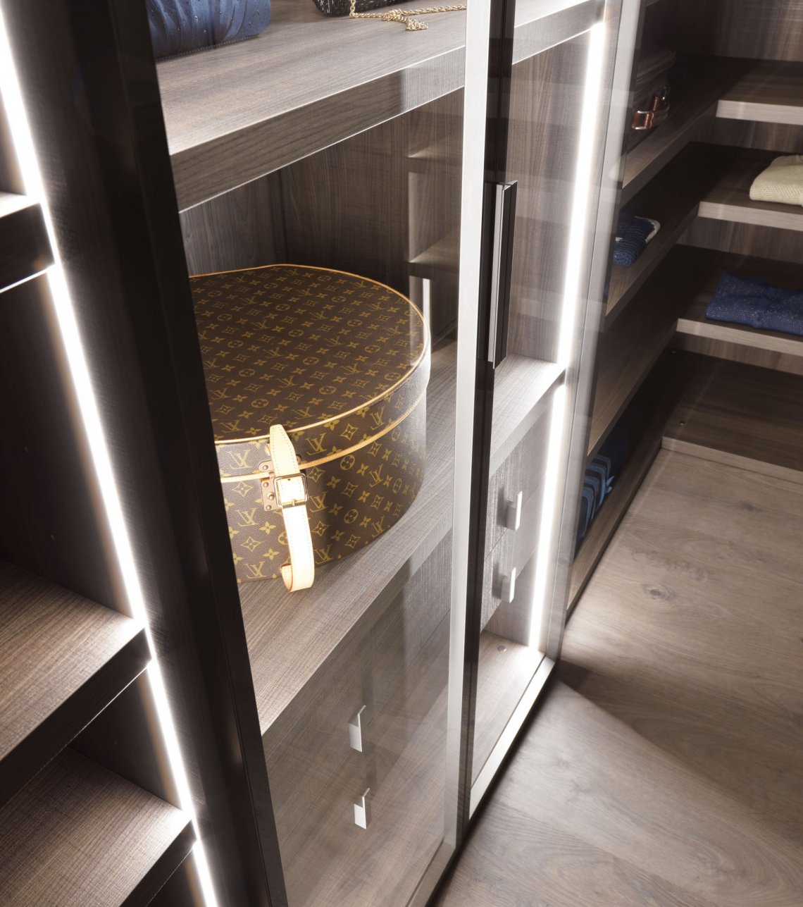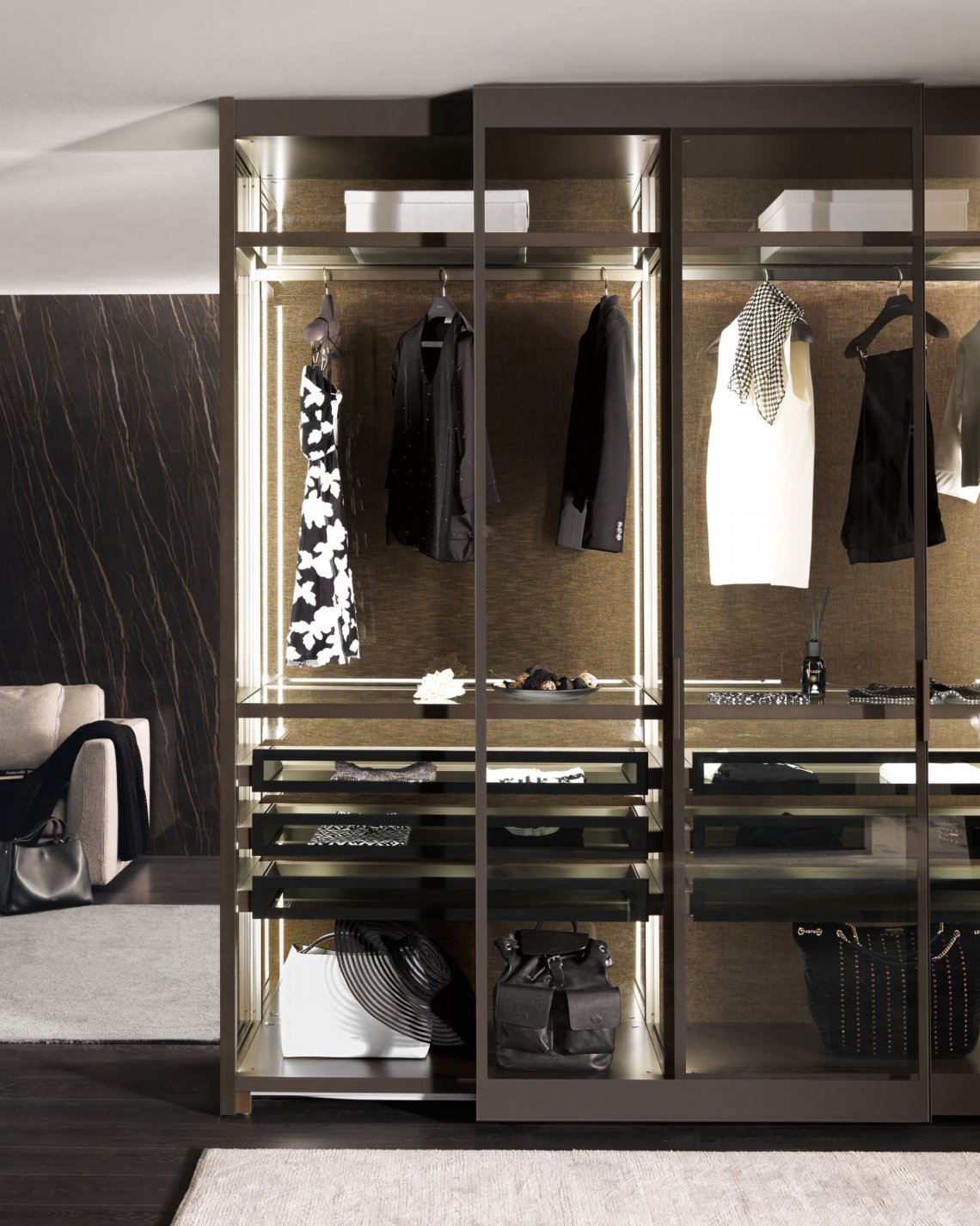 The evolution of Palo Alto I-Box, Palo Alto Free is the new wardrobe concept that calls for the use of doors directly supported by floor-to-ceiling posts that form the structure. This simple system for closing niches or separating spaces sustains a series of accessories for the compartments, similar to those of the Palo Alto I-box.
