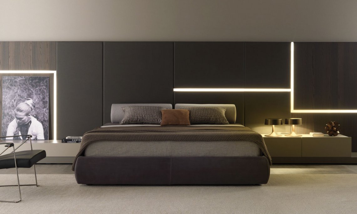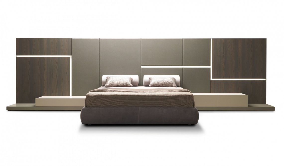 墻體與床具相互襯托,把多種不同飾面,例如木紋、烤漆 和織物等碰撞衍生微妙的視覺(jué)感受。