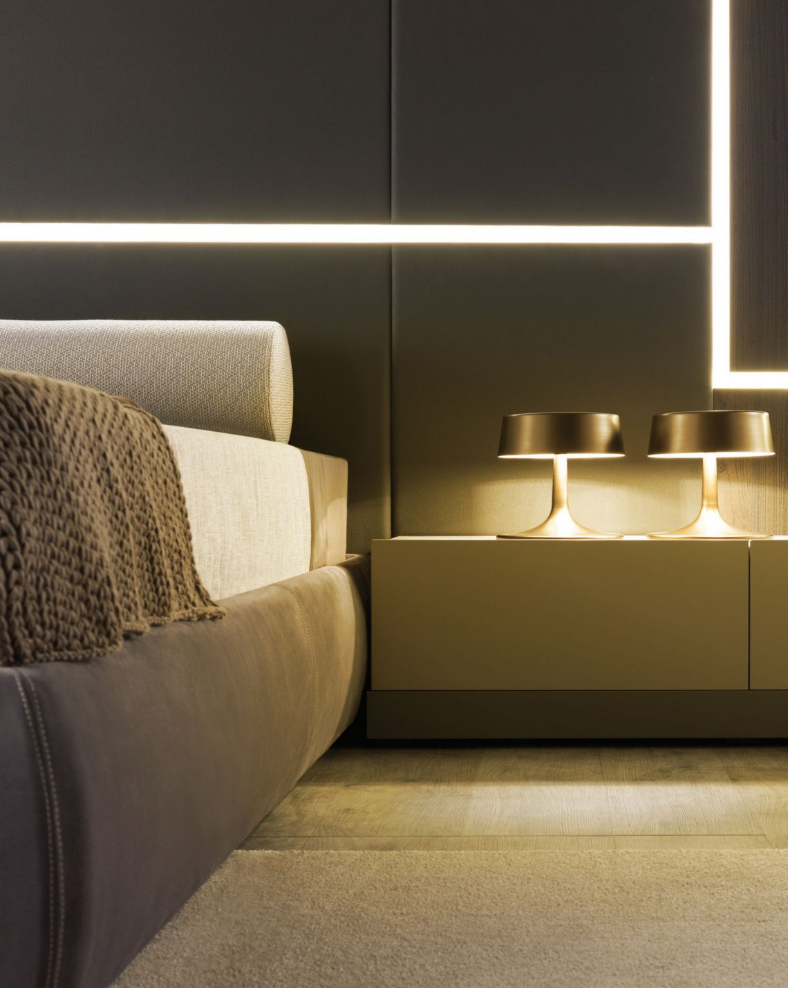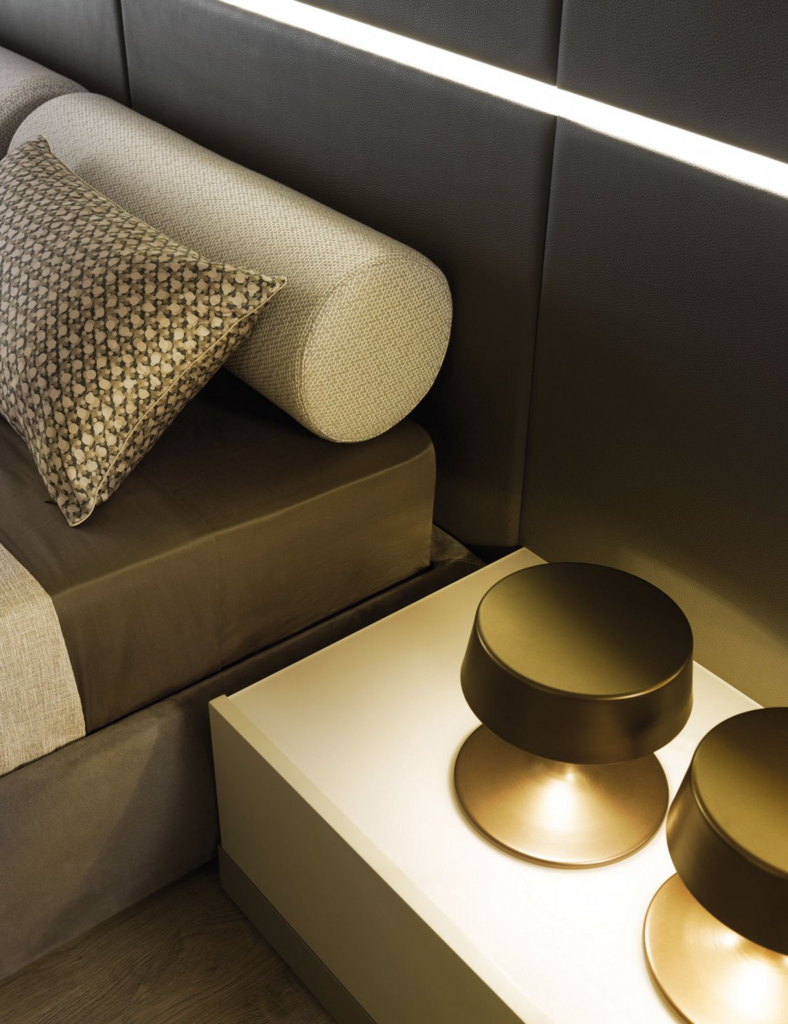 設(shè)計(jì)大師Mauro Lipparini 說(shuō):這個(gè)位于中央的獨(dú)特設(shè)計(jì)把裝飾面和照明元素巧妙搭配,更奇妙地成為Ghiroletto床具的重心。