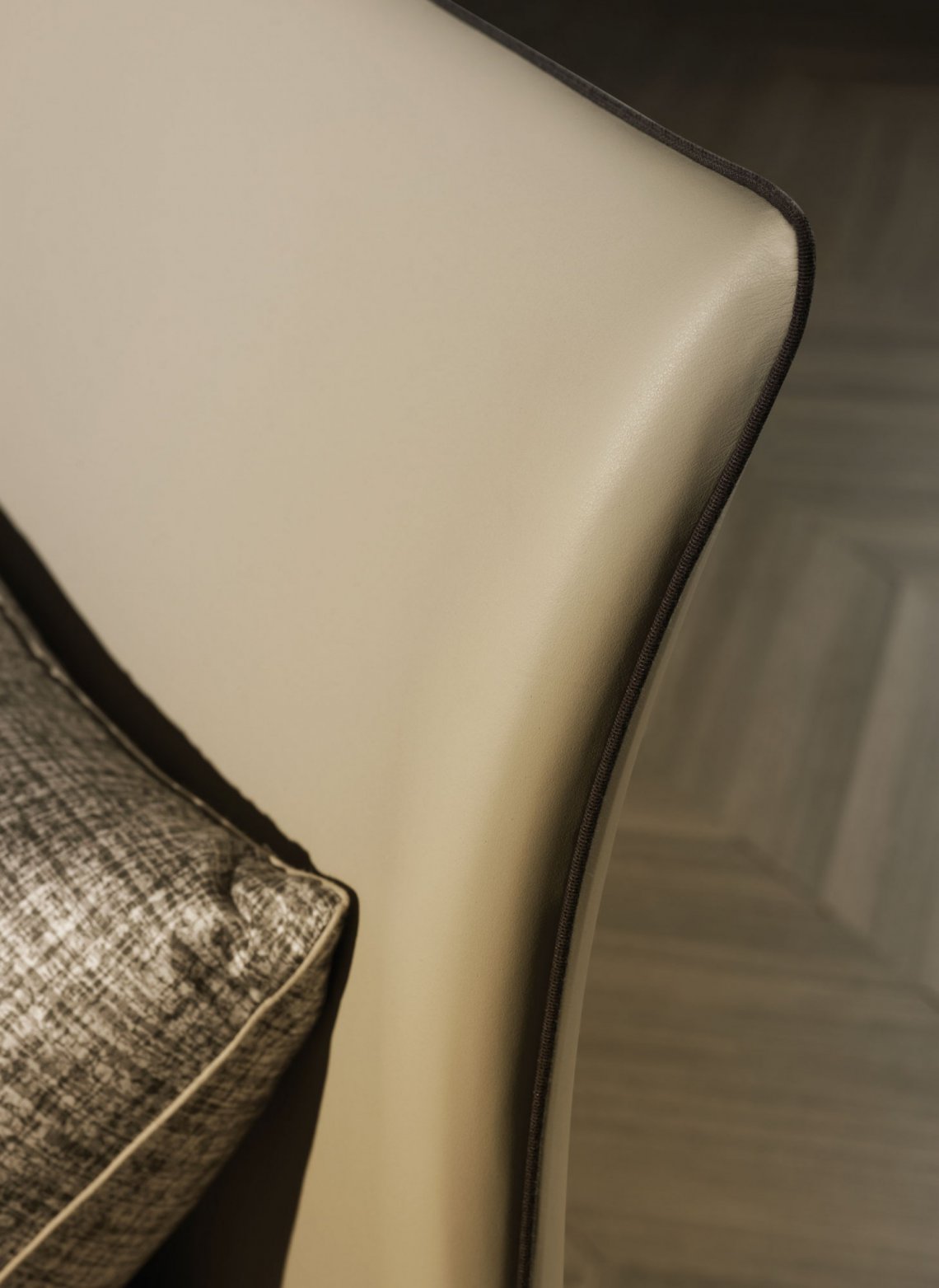 Margareth 融和前沿技術材質,集優雅尊貴于一身。高級材料包裹鋼板床頭,以定制手工藝方式裝飾修邊。匠心獨運、細致無比。