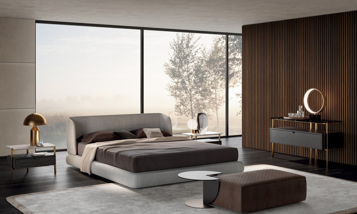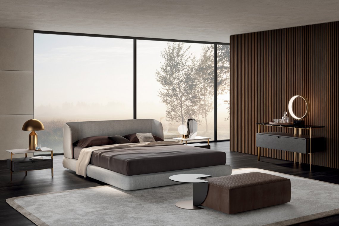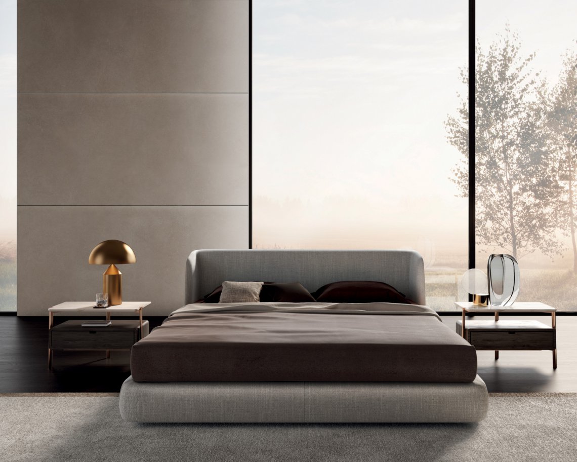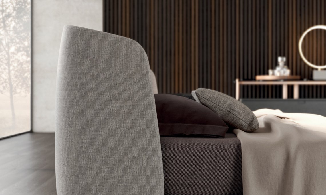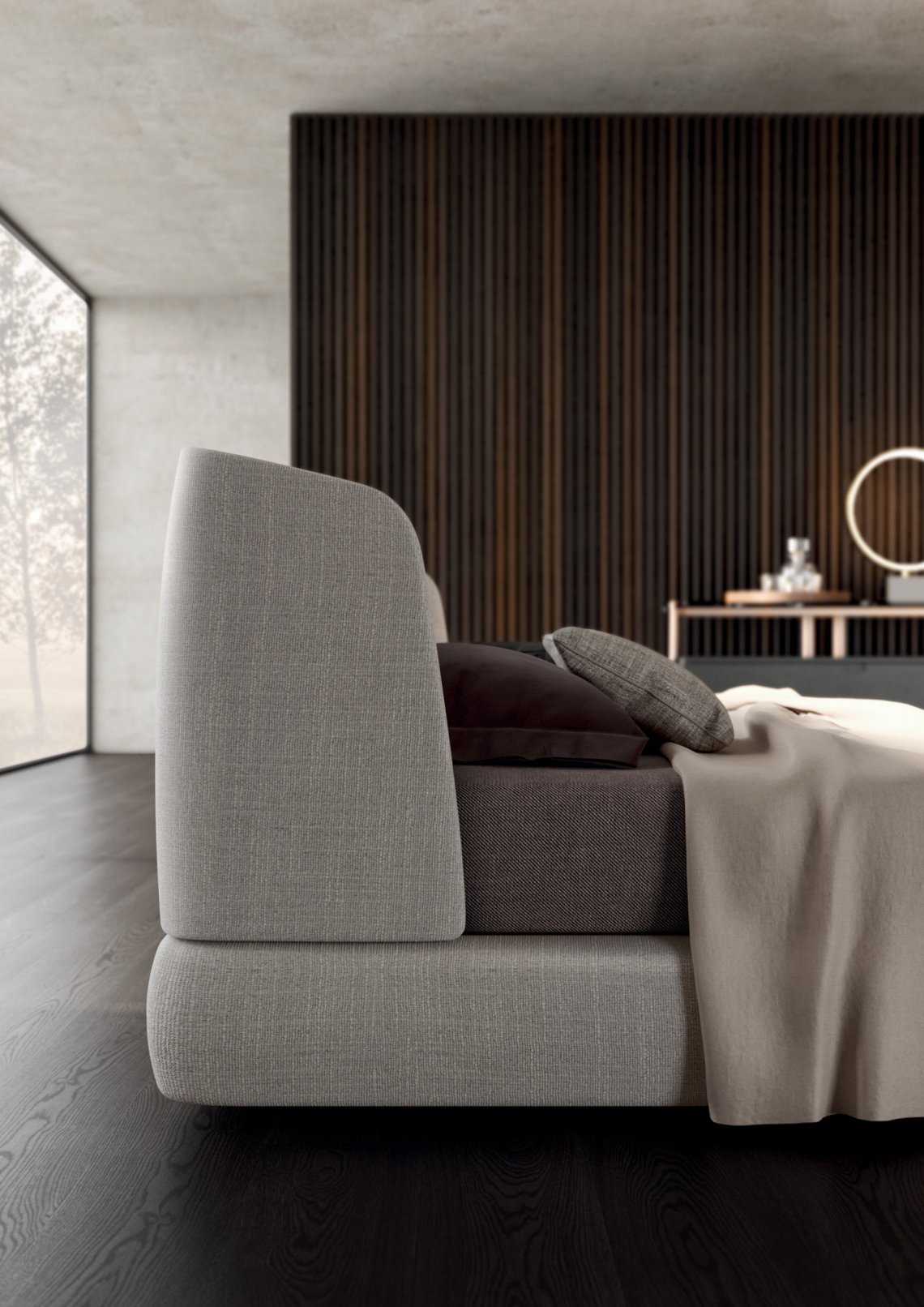 床造型飽滿豐盈的Frida床,具有排骨床架可作兩個位置靈活停留,底座備有超大空間,存儲性能強大。